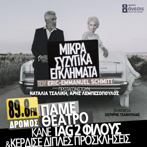 Ο ΔΡΟΜΟΣ 89,8 σε στέλνει στην θεατρική παράσταση «ΤΕΛΕΙΟΙ ΞΕΝΟΙ», στο Θέατρο Αθηνά! Οι «ΤΕΛΕΙΟΙ ΞΕΝΟΙ», του Π. Τζενοβέζε, σε σκηνοθεσία Γιώργου Πυρπασόπουλου & Πέτρου Λαγούτη και παραγωγή των Θεατρικών Επιχειρήσεων Θ. Μαροσούλη, η παράσταση που ενθουσίασε κοινό και κριτικούς και […]