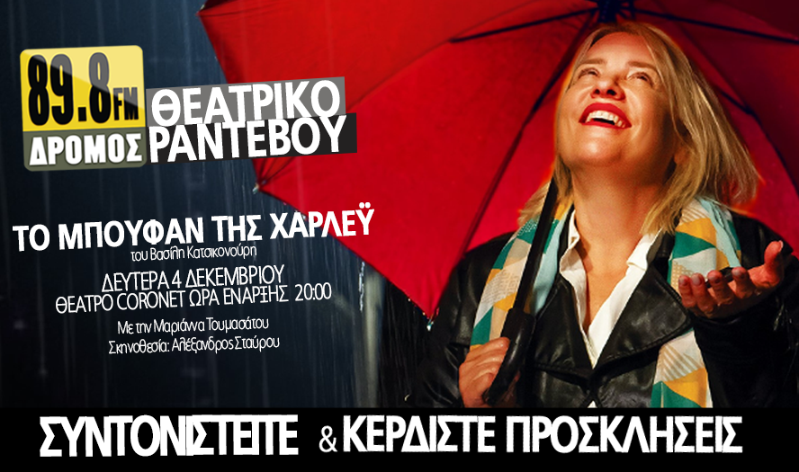 Ο ΔΡΟΜΟΣ 89,8 σας δίνει θεατρικό ραντεβού, στην πρεμιέρα της παράστασης «ΤΟ ΜΠΟΥΦΑΝ ΤΗΣ ΧΑΡΛΕΫ» στο θέατρο Κορονετ, την Δευτέρα 4 Δεκεμβρίου, στις 8 βράδυ!
