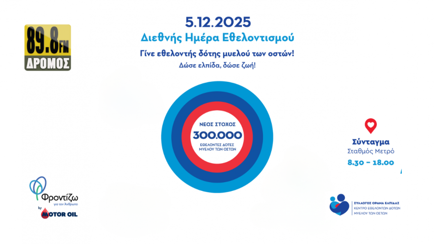 Στις 5 Δεκεμβρίου, ο ΔΡΟΜΟΣ 89.8 θα βρίσκεται ζωντανά στην Πλατεία Συντάγματος, από τις 10:00 έως τη 13:00, μεταδίδοντας το μήνυμα της προσφοράς και φιλοξενώντας αγαπημένους καλλιτέχνες που συμμετέχουν ενεργά στη δράση.